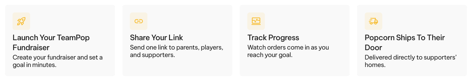 Launching a popcorn fundraiser with TeamPop is fast, simple, and doesn’t require any fundraising experience. Whether you’re a coach, team manager, or busy parent, you can get your fundraiser up and running in just a few clicks.