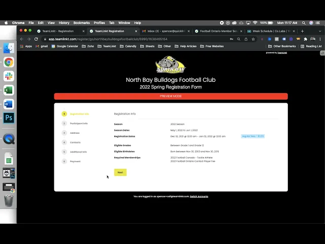 Once your form is active, it will appear on your TeamLinkt registration form, and you will be able to share it with your membership to register.