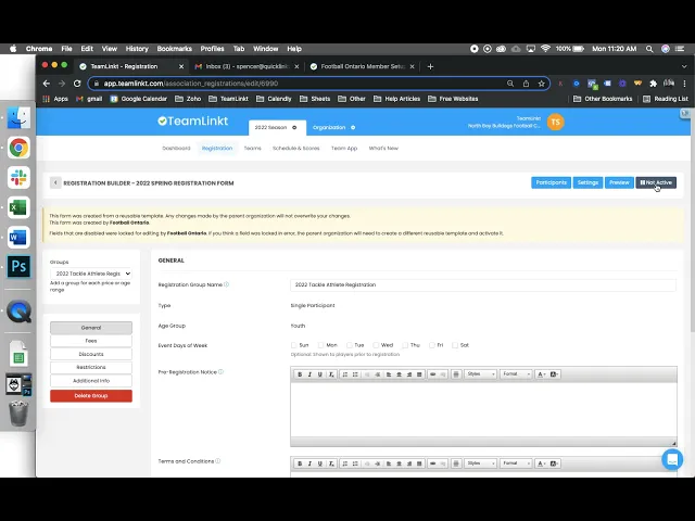How to set up registration in TeamLinkt for Football Ontario Member Clubs.